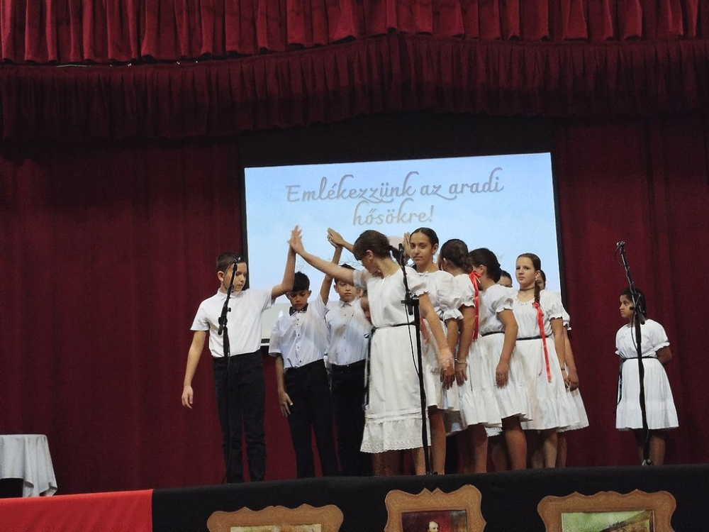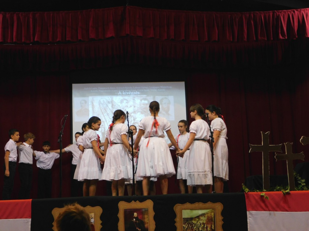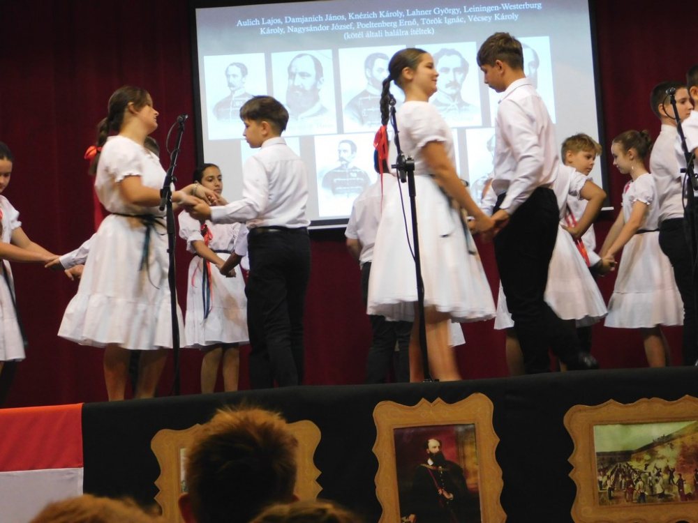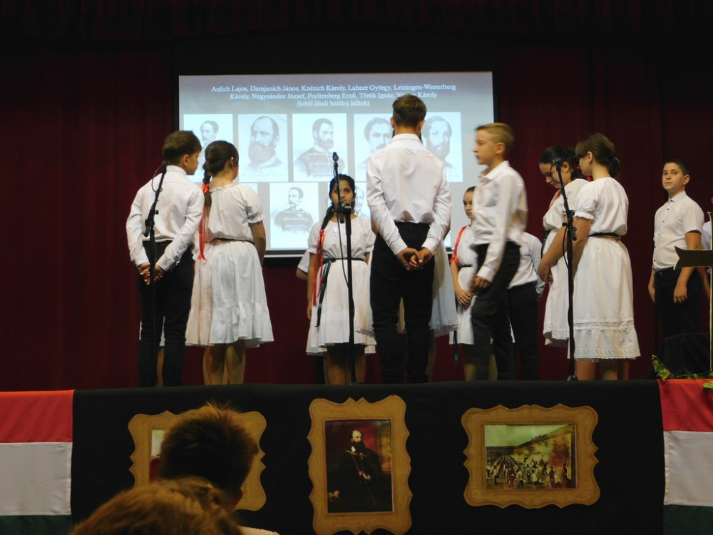 Iskolánk 6.a osztályos tanulói „Bátrak öröksége” címmel rendezett műsorral léptek színpadra. Méltó módon elevenítették fel a szabadságharc és az azt követő példátlan osztrák önkényuralmi megtorlás eseményeit.