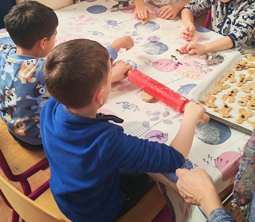 A különböző játékos feladatokon kívül a közös mézeskalács sütés nyújtott fantasztikus élményt és örömteli hangolódást az ünnepekre. A picik nagy lelkesedéssel szaggatták ki a különböző formákat és díszítették azokat. Eközben pedig lehetőségük nyílt megismerkedni és beszélgetni a tanító nénikkel.