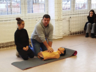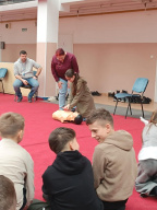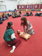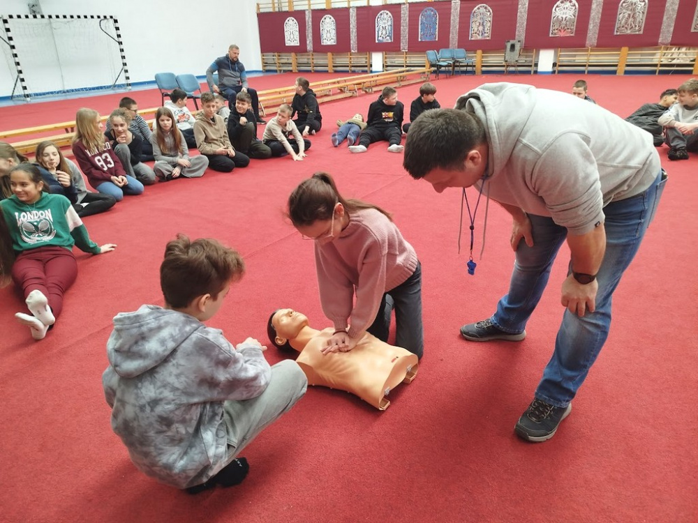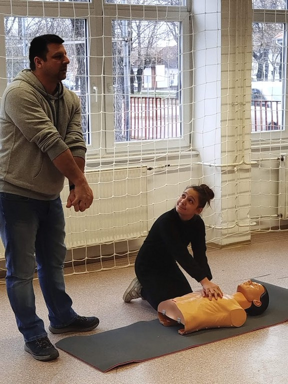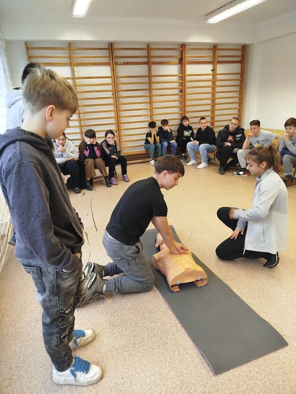 A közös munkák egyik része, hogy egy adott évfolyamon elsősegélynyújtást oktatunk.