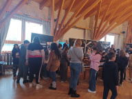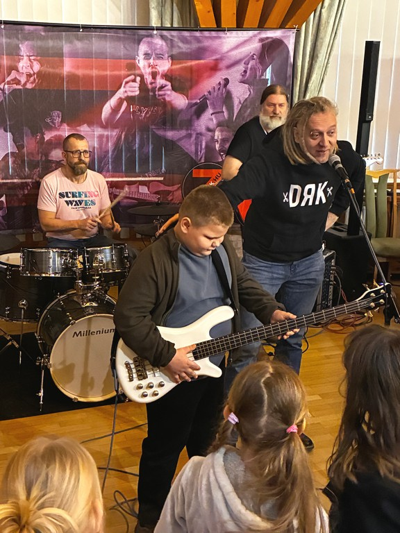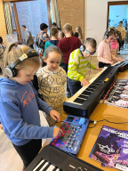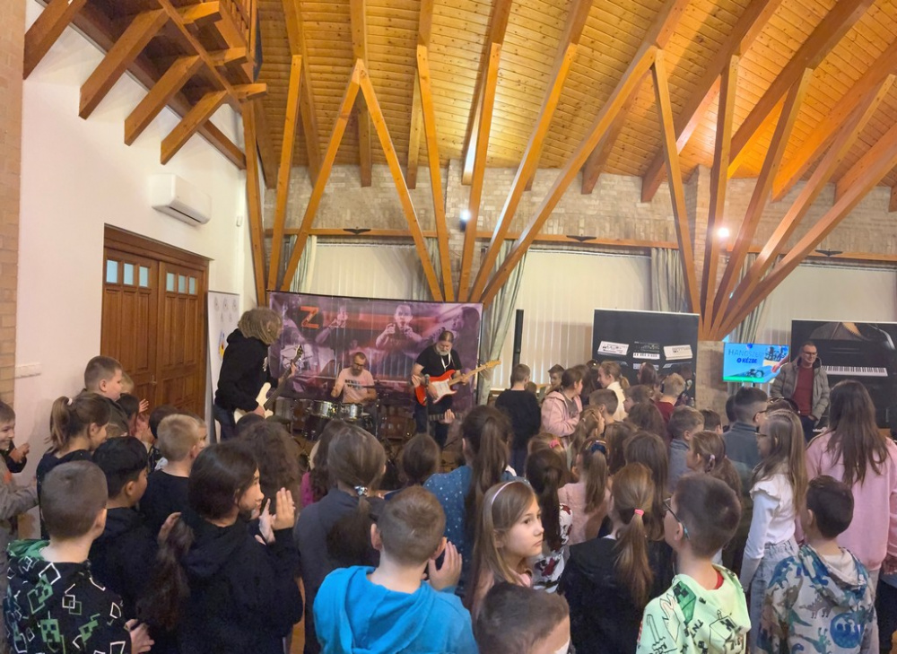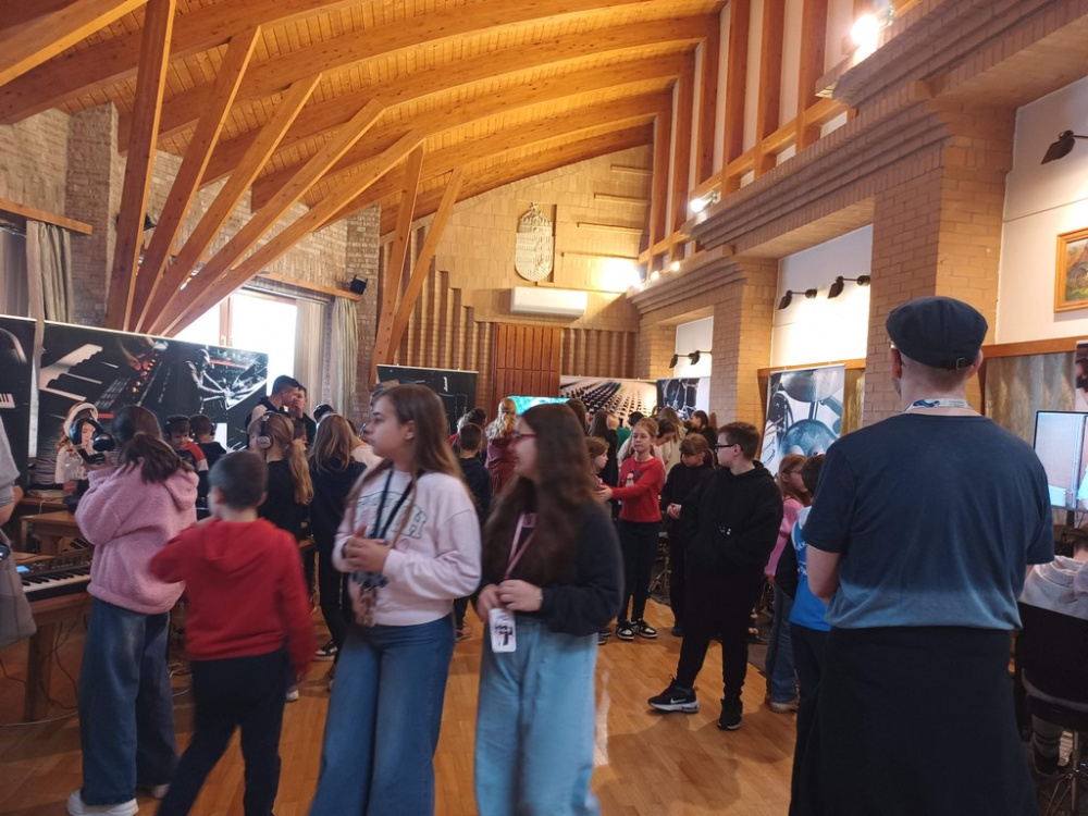 2025. november 24 - én és 26 - án a harmadik évfolyam és a 4.a és 4.b osztályok részt vettek a lajosmizsei művelődési központ által szervezett "Hangszert a kézbe!" programon. Mindkét napon reggel autóbusszal utaztunk Lajosmizsére, ahol először egy előadást hallgattunk meg Európa népeinek hangszereiről, illetve a gitárzenéről. Az előadás közben lehetőség volt a gyerekek számára is bemutatkozni egy - egy énekkel. Ezután egy rögtönzött koncert után kipróbálhattuk a kiállított elektromos hangszereket. A gyerekek nagy érdeklődéssel próbálgatták a dobfelszereléseket, elektromos zongorákat, gitárokat. Még az előadáson bemutatott népi hangszereket is meg lehetett szólaltatni. Mindenkinek nagy élmény volt ez a délelőtt.