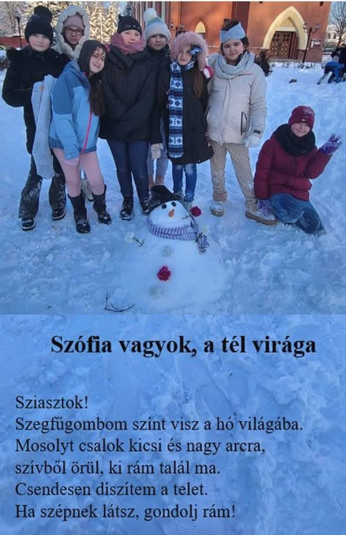 A Kecskeméti Tankerületi Központ által meghirdetett hóemberkészítő versenyre több osztály is próbált iskolábkból pályázni.