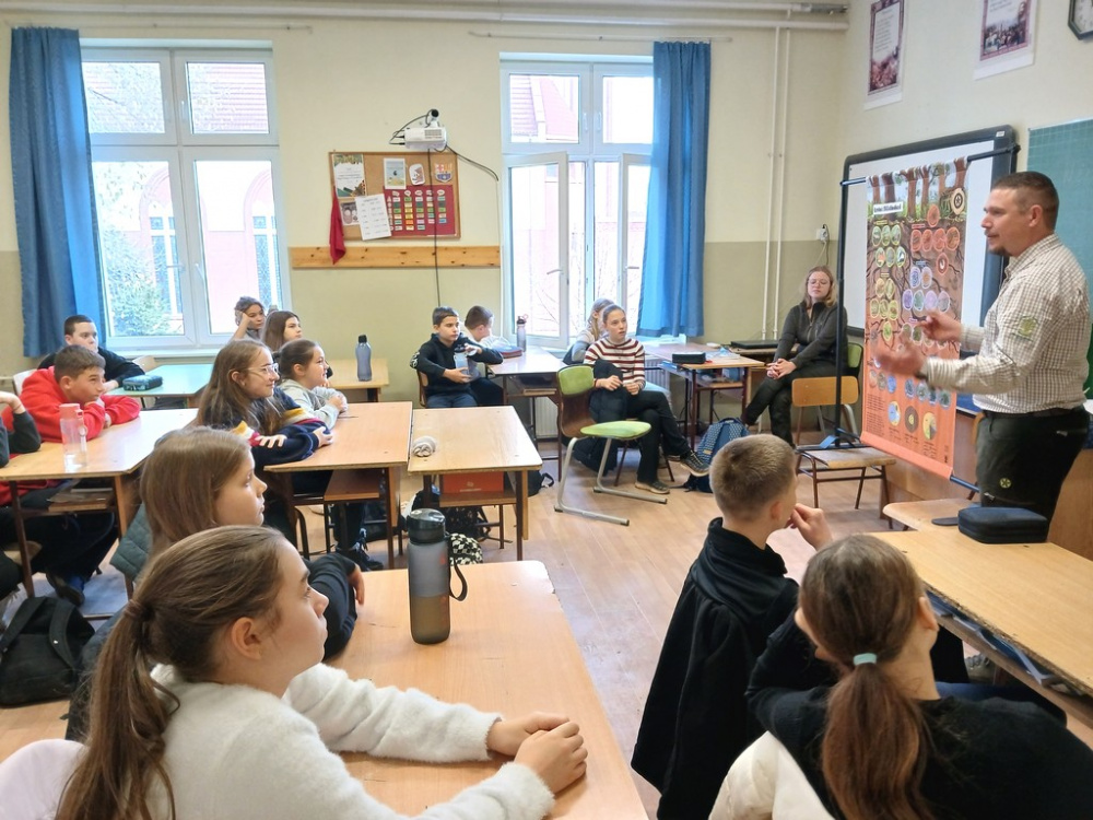 Az Országos Erdészeti Egyesület által meghirdetett "Iskolában az erdő" programsorozat keretében a mi iskolánkba is beköltözött az erdő 3x45 perc erejéig. A Vackor Vár Erdei Iskola munkatársai tartottak élménypedagógiai órát a 6. évfolyamos tanulóknak.
