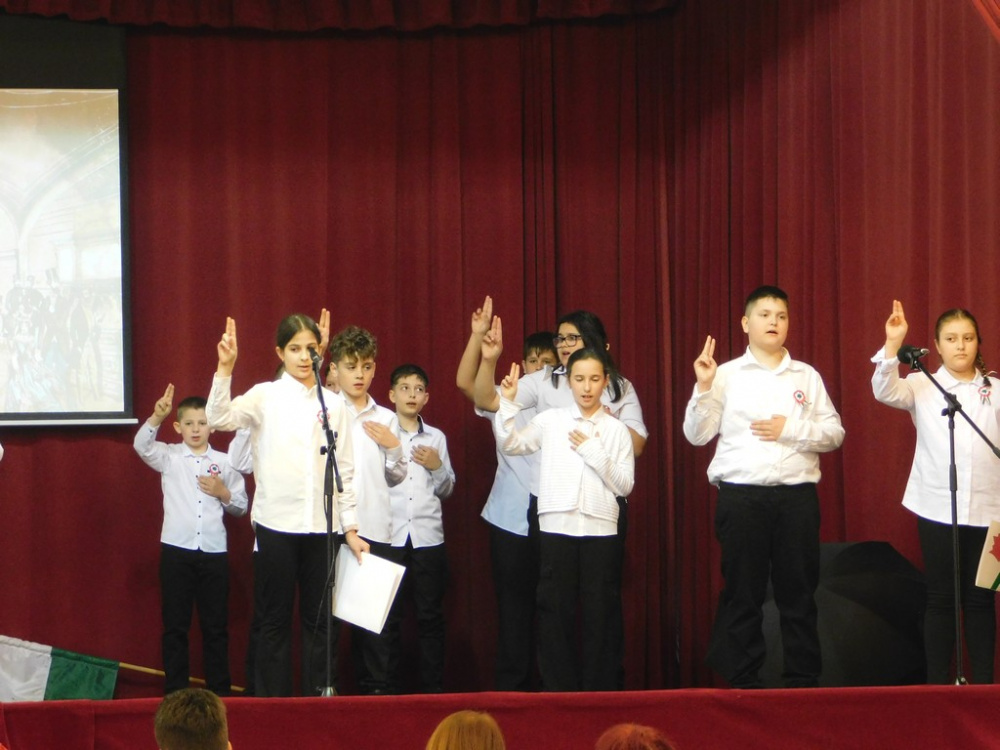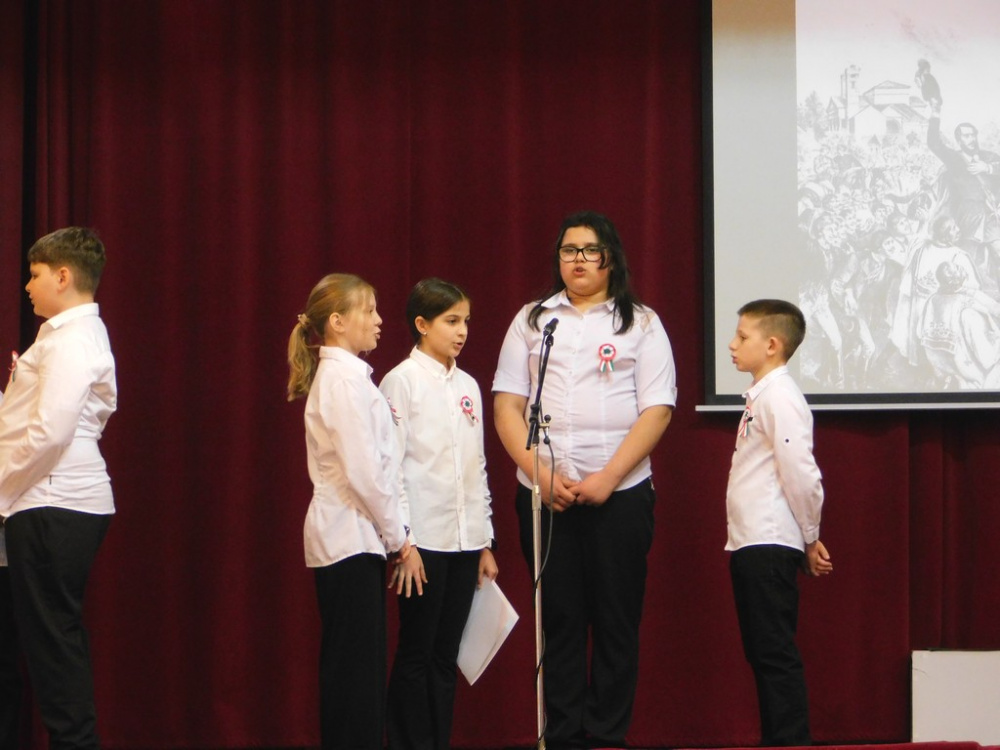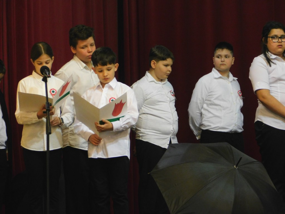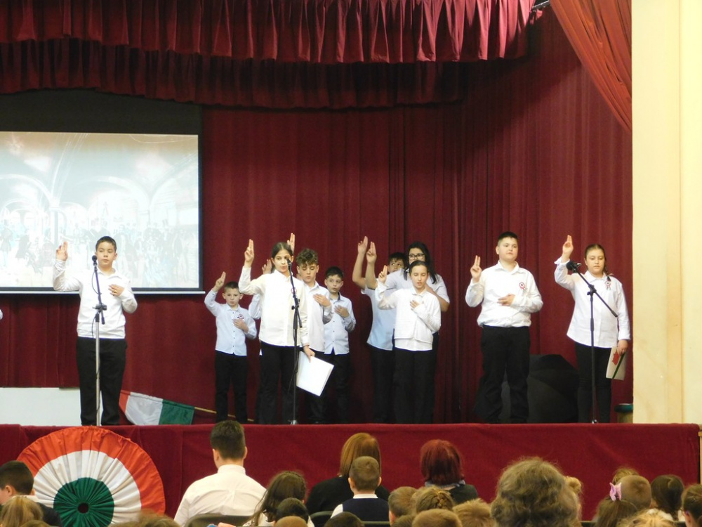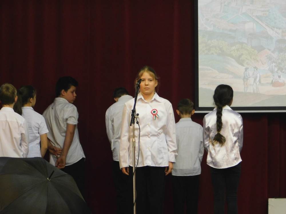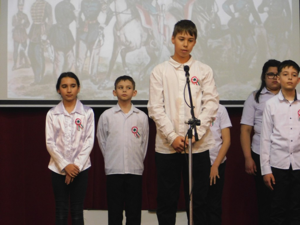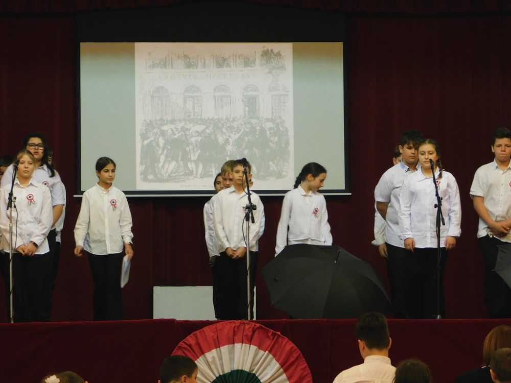 Az idei tanévben az 5.d osztály vállalta az 1848-as forradalom történelmi eseményeinek ünnepi keretben történő feldolgozását.