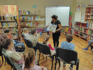 A hét utolsó napján szintén mesét hallgathattak a gyerekek. Az 1-2.-os tanulóknak Lukácsi Menyhértné Sári óvó néni hozott egy mesét, a 3-4.-es tanulóknak pedig Gabnai Károlyné Kati néni mesélt.