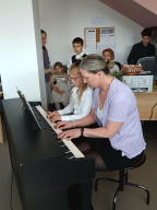 A koncert egyik különlegessége a zongora és a xilofon együtthangzása, amit iskolánk végzős diákjai adtak elő.