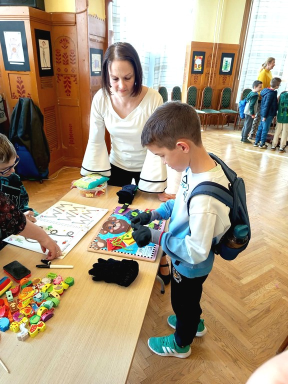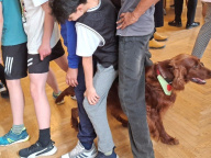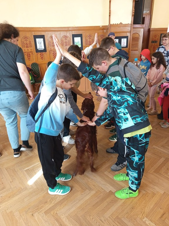 Különleges élmény volt a terápiás kutyák bemutatója, ahol játékos feladatokban a kutyusok a gyerekek által formált alagútrendszeren szlalomozhattak át, nagy sikert aratva. Érdekes előadást és beszélgetést hallhattak az autizmusról, az autista emberek érzéseiről és mindennapjairól, valamint az elfogadásuk és segítésük érdekében jó tanácsokat is kaptak. Nagyon tanulságos volt a beszélgetés, mivel a gyerekek – bár eleinte azt mondták, nem ismernek autista embert – utólag rájöttek, hogy mégis vannak ilyen ismerőseik, ami másnap az iskolában is további mélyebb beszélgetést igényelt az egyik csoportnál. Az emeleten megtekintettük az autizmussal élő gyermekek csodálatos rajzkiállítását is.