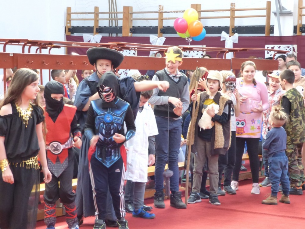 Péntek délután rendeztük meg a hagyományos iskolai farsangi mulatságot. Először a 3.d osztály hozta meg az étvágyunkat a szilvásgombócról szóló produkciójával, mely után az elmaradhatatlan jelmezes felvonulás következett. Az ötletes, szebbnél szebb jelmezekbe öltözött gyerekek a tornacsarnok piros szőnyegén körbe sétálva, büszkén mutatták meg, mi lakozik a lelkükben, mivé szeretnének átalakulni, hiszen a hagyomány szerint farsang idején bárki azzá válhat, amivé csak akar.