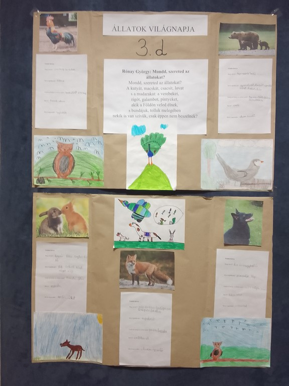 A programban több osztály is aktívan részt vett. Készült a gyerekek számáraállatvédelmi totó, ahol a tanulók játékos formában tehették próbára tudásukat. A felső tagozatosok az állatvédelmi rajzpályázatra készítettek munkákat. Az osztályokban kiosztottuk az Állatbarát Hős Útleveleket és volt osztály, ahol megtették a gyerekek az Állatbarát Hős esküt. Az iskolai könyvtárt is segítségül hívtuk az állatvédelmi ismereteink bővítése érdekében.