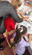 A foglalkozás végén a résztvevők közösen teáztak, majd ajándékba egy-egy Mézi figurát kaptak, amit a negyedikesek készítettek nekik.