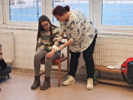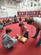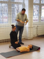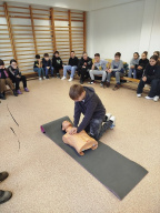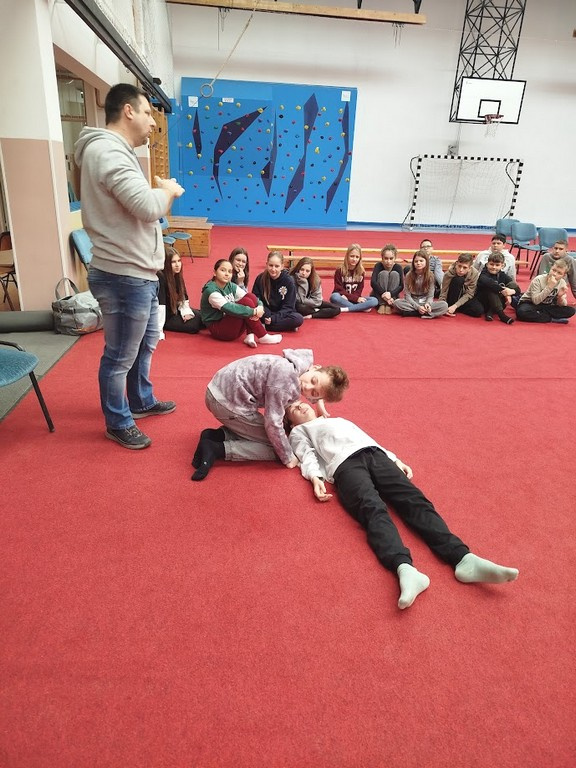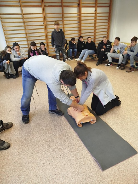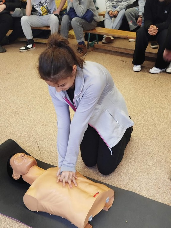 A közös munkák egyik része, hogy egy adott évfolyamon elsősegélynyújtást oktatunk.