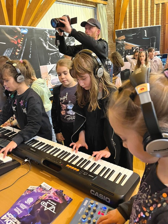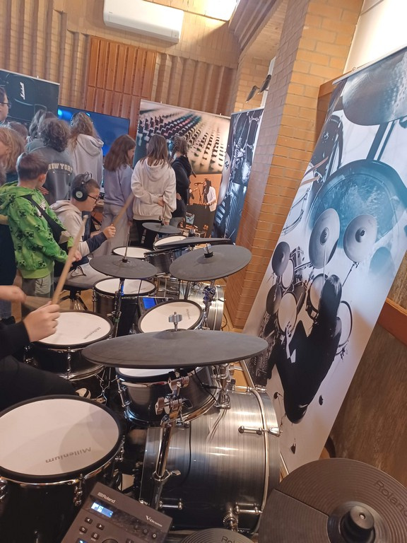2025. november 24 - én és 26 - án a harmadik évfolyam és a 4.a és 4.b osztályok részt vettek a lajosmizsei művelődési központ által szervezett "Hangszert a kézbe!" programon. Mindkét napon reggel autóbusszal utaztunk Lajosmizsére, ahol először egy előadást hallgattunk meg Európa népeinek hangszereiről, illetve a gitárzenéről. Az előadás közben lehetőség volt a gyerekek számára is bemutatkozni egy - egy énekkel. Ezután egy rögtönzött koncert után kipróbálhattuk a kiállított elektromos hangszereket. A gyerekek nagy érdeklődéssel próbálgatták a dobfelszereléseket, elektromos zongorákat, gitárokat. Még az előadáson bemutatott népi hangszereket is meg lehetett szólaltatni. Mindenkinek nagy élmény volt ez a délelőtt.