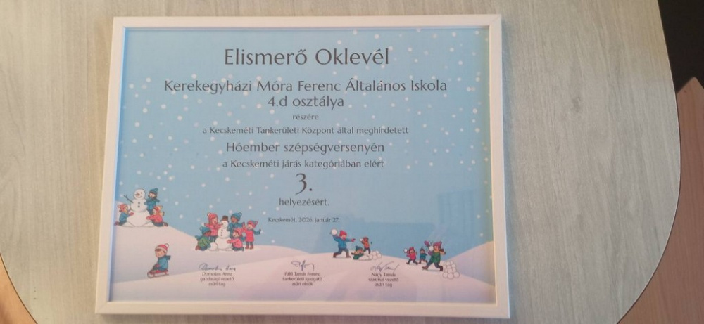 A versenyben végül a 4.d osztály 3. díjat nyert a Kecskemét-járási versenyben.