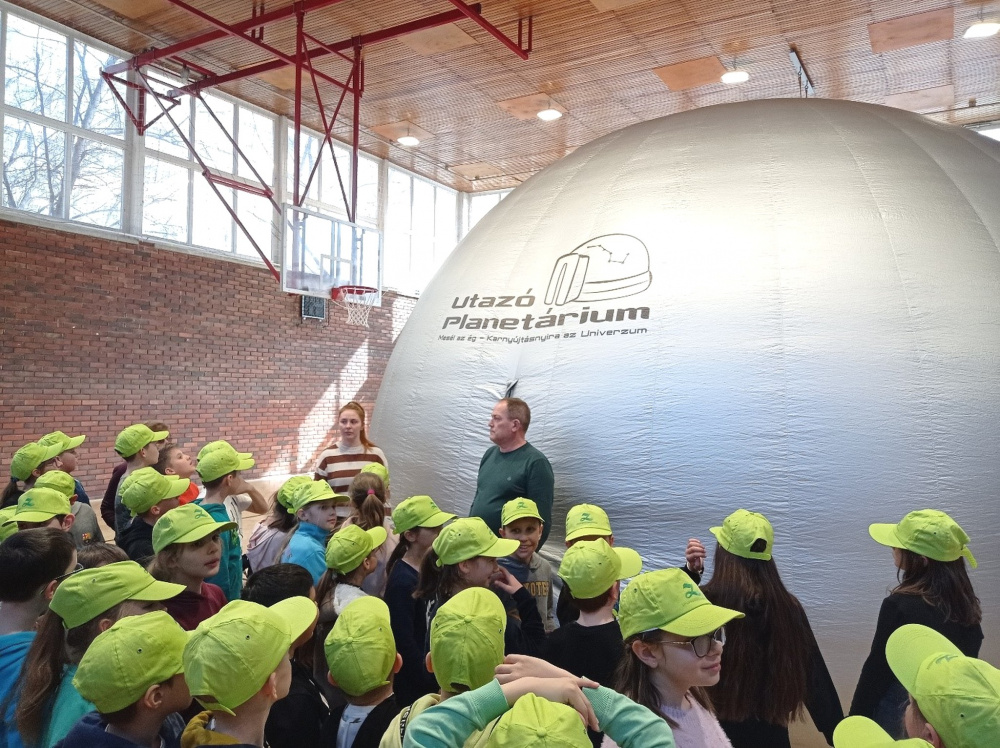 Közel 500 lelkes diák és pedagógus ismerkedett a csillagos égbolt rejtelmeivel az Utazó Planetárium segítségével. Részt vettünk a humoros és egyedülálló állatbemutatón, ahol megismerkedhettünk Sufnival az egérrel, Lufival a patkánnyal, Spurival a görénnyel, egy menyéttel, egy rókával, aki igazi filmsztár, illetve egy csodakutyával. (Illetve megtudhattuk azt is, hogy a jéghegyek olvadása miatt a jegesmedvék kénytelenek Amerika északi részére költözni, hogy ne halljanak éhen, és a grízlik és a jegesmedvék csodálatos találkozásából született medvebocsokat tejbegrízlinek hívják:) .) A programunk végén, pedig kalandozhattunk az installációs erdőben, ahol gyakorolhattuk a szelektív hulladékgyűjtést, és a napelemkészítést játékos formába.