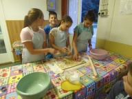 Szakmai program megvalósulása: Kézműves céheket alakítottunk ki úgy, hogy a céhmesterek (pedagógusok) inasokat toboroztak a saját műhelyükbe. Így alakultak ki az alábbi céhek: takácsok (pókoztak, fontak, szőttek, körmönfontak, körmöcskéztek), pékek (kenyeret, mézeskalácsot sütöttek, recepteket gyűjtöttek), bőrdíszművesek (karkötőt, medálokat, bugyellárisokat, hajdíszeket készítettek) és szabók/varrók/ (telefontokot, illatzsákot, könyvjelzőt, bábokat varrtak).