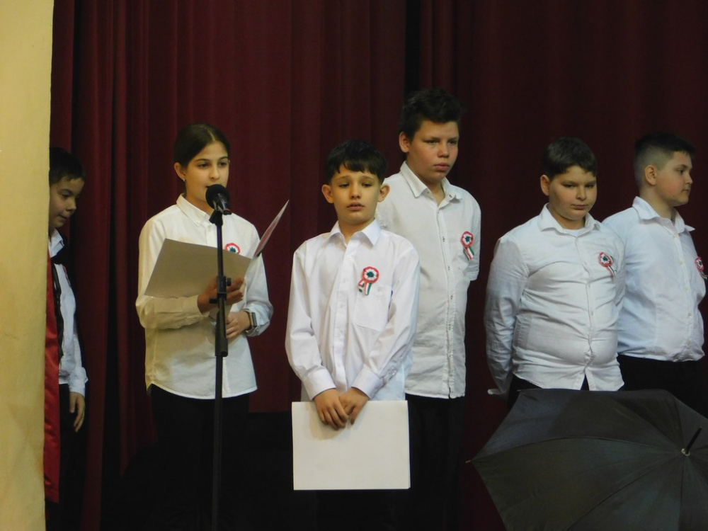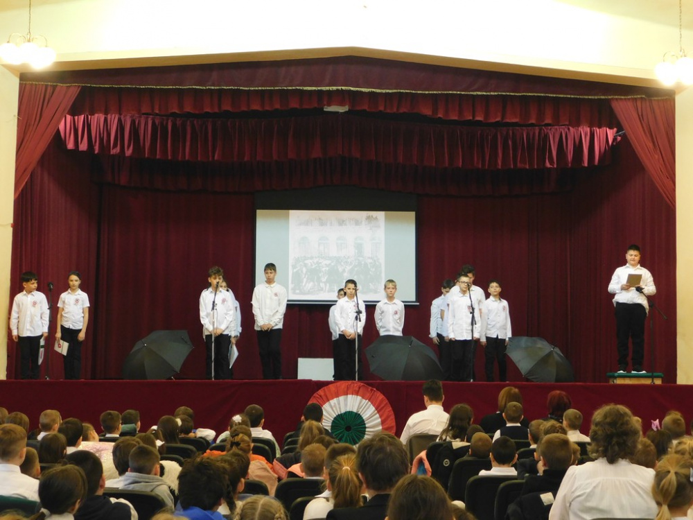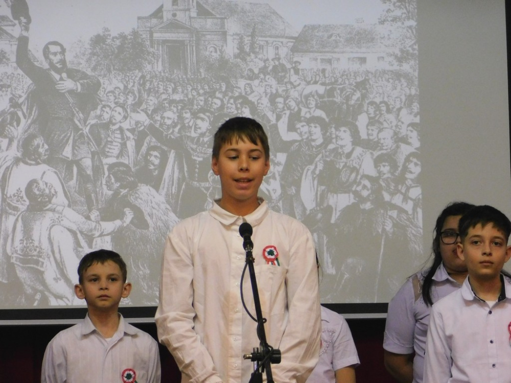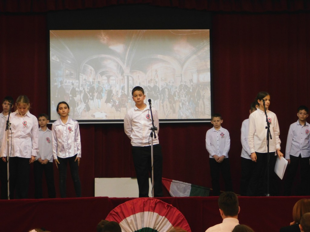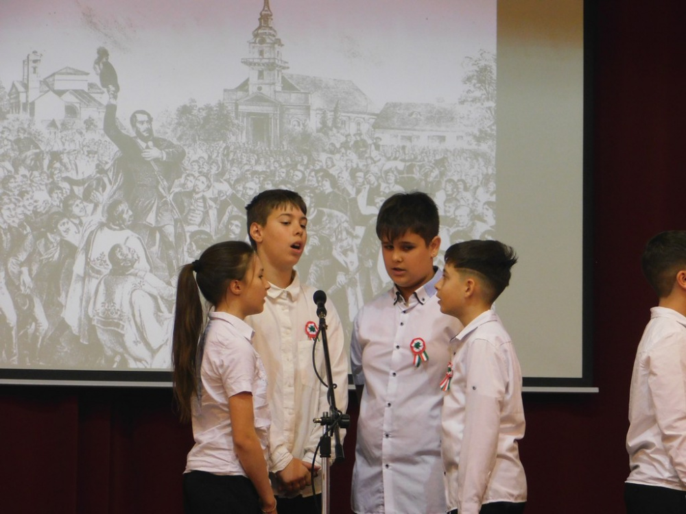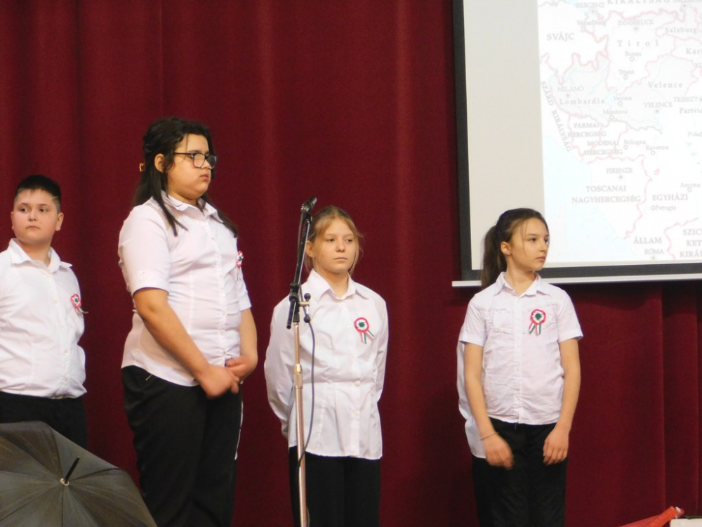Az idei tanévben az 5.d osztály vállalta az 1848-as forradalom történelmi eseményeinek ünnepi keretben történő feldolgozását.