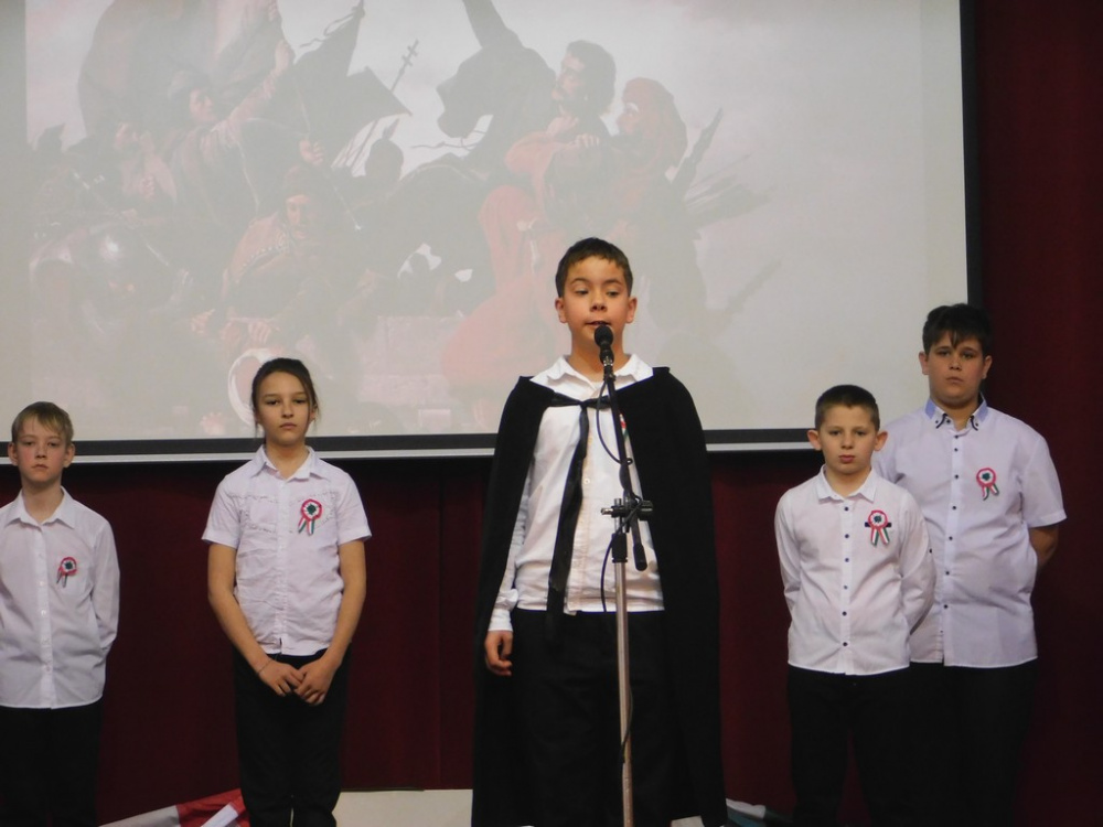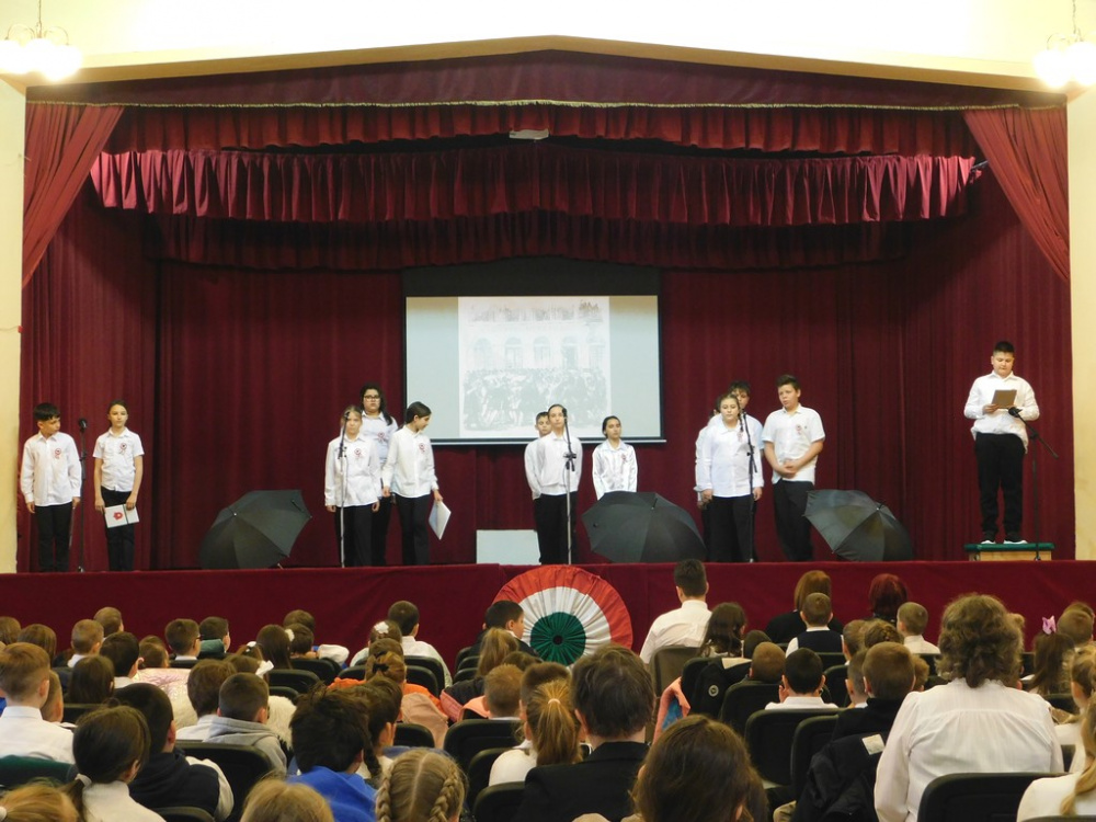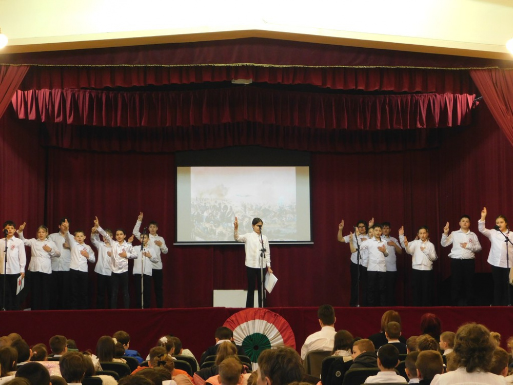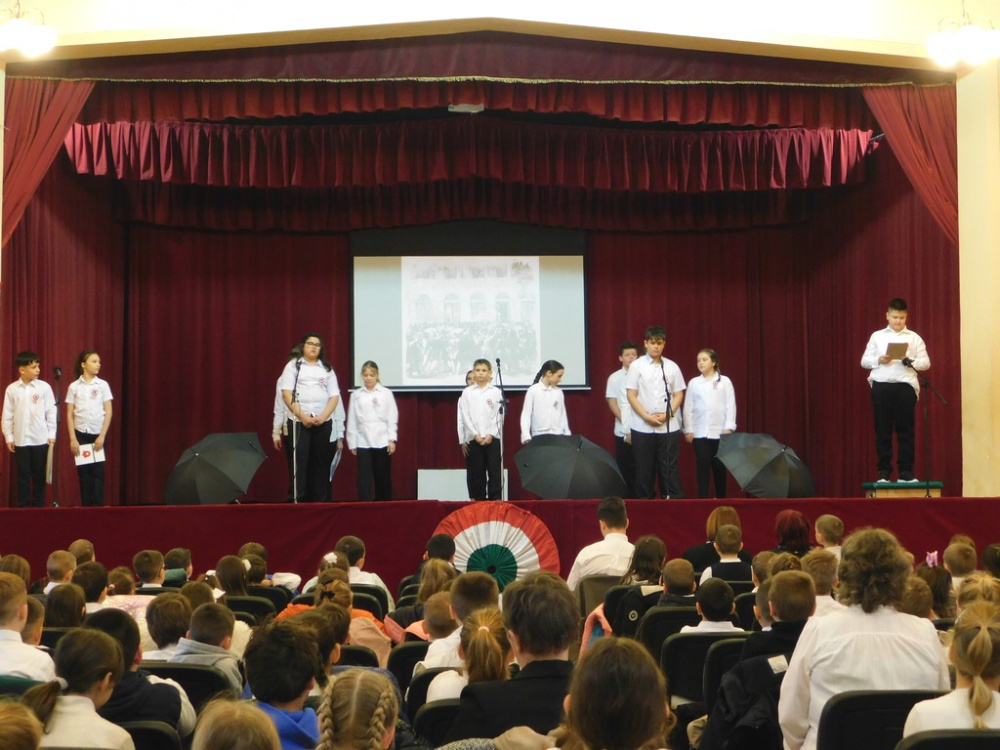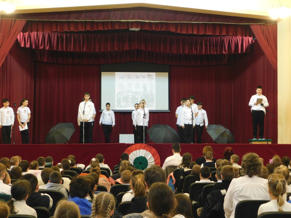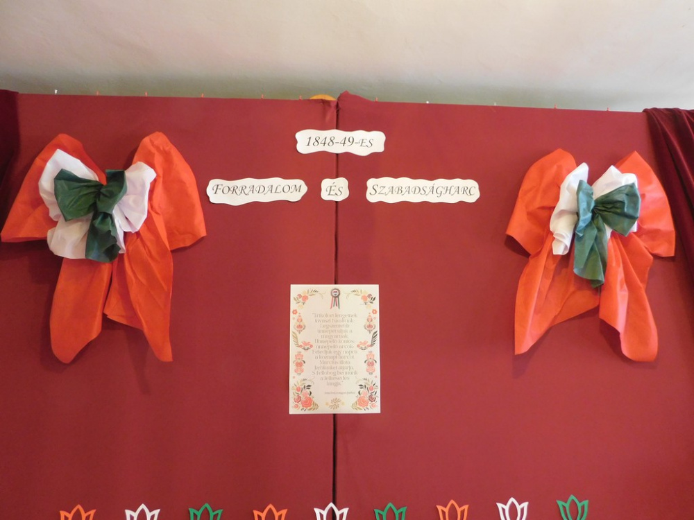 Az idei tanévben az 5.d osztály vállalta az 1848-as forradalom történelmi eseményeinek ünnepi keretben történő feldolgozását.