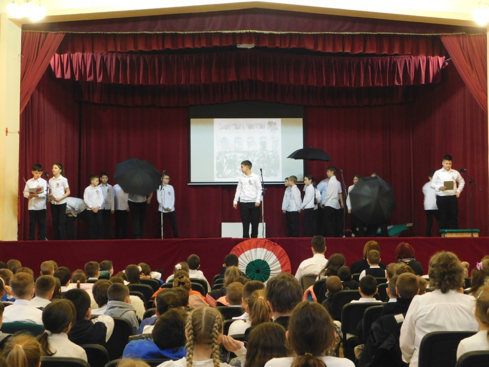 A nemzeti összetartozás napja alkalmából a 7.d osztály tanulói készültek műsorral.