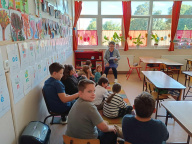 A hét utolsó napján szintén mesét hallgathattak a gyerekek. Az 1-2.-os tanulóknak Lukácsi Menyhértné Sári óvó néni hozott egy mesét, a 3-4.-es tanulóknak pedig Gabnai Károlyné Kati néni mesélt.