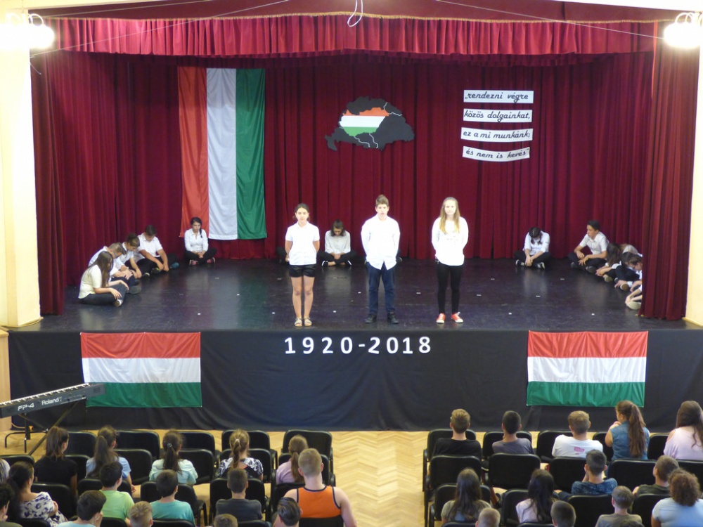 2018. június 4-én a Nemzeti Összetartozás Napja alkalmából iskolánk 7.a osztályos diákjai megemlékezést tartottak a Katona József Művelődési Házban