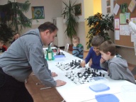 2012. december 20-án iskolánkban nyílt sakkszakkört és szimultán tartottunk, melynek vendége Szabó Tibor korábbi OB II-es sakkozó és hobbi sakkoktató volt. A felhívásnak megfelelően a foglalkozáson nem csak a sakkszakkör állandó résztvevői vettek részt, hanem bárki aki, kedvet kapott a szimultánhoz. A megjelent 34 fő közül sokan hozták saját készletüket, és azzal vettek részt a rendezvényen. A megjelentek nagy számára való tekintettel a foglalkozásokra csoportbontásban került sor, majd ez után a résztvevők egymással illetve az oktatókkal is megmérkőzhettek. A két csoport felváltva ismerhette meg a sakktábla beosztását és a versenysakk szabályainak alapjait. A hivatalos, versenyszerűen folytatott sakk szabályai közül sok nem ismert a szélesebb közönség között, ezért először ezeknek a szabályoknak a bemutatására kerül sort. Ilyenek például a kezdés és a sáncolás szabályai, a menet közbeni ütés. Az ún. „átváltozás” szabály talán az, ami legtöbb meglepetést okozta sakkszakkört nem látogató résztvevők között, mert a hétköznapi sakkban ezt gyakran tévesen használják és alkalmazzák. Az alapvető versenyszabályok mellett a foglalkozások másik fő témaköre maga a sakktábla volt. A sakk alapjai a táblán való tájékozódással kezdődnek, így ismertetésre kerültek olyan fogalmak, mint „sorok”, „vonalak”, „átlók”, „centrum”. Ezeknek az alapvető elemeknek az elsajátítása még bábuk nélkül történt, majd megvizsgáltuk, ezen fogalmak hatását az egyes bábok mozgására. Említésre került a versenysakktábla alapvető kellékei, a vonalak betűjelei és a sorok számozása melyek a játszmák megörökítésének elengedhetetlen eszközei. Érdekességképpen bemutatásra került a sakkóra használata, és a megfelelő alkalmazás szabályai. Az elméleti foglalkozás után a vendégek és sakkszakkör állandó látogatói egymás ellen illetve az oktatókkal mérhették össze tudásukat. A közel két órás jókedvű rendezvényen sokan ismerkedhettek meg a sakk komolyabb formájával, és olyan ismereteket szerezhettek, amelyek fejleszthetik egyéni sakktudásukat, esetleg kedvet kaptak a sakk mélyebb megismeréséhez. A sikeres foglalkozás után tervezzük, hogy a szimultánnak és a nyílt foglalkozásnak folytatása lesz a jövőben.