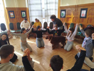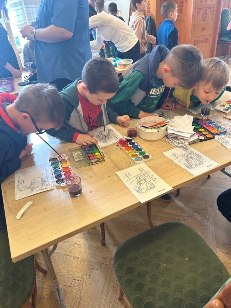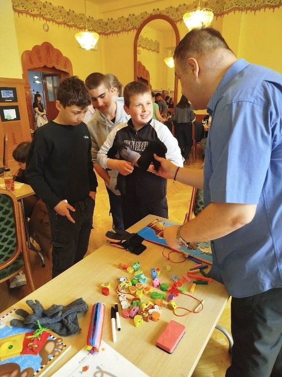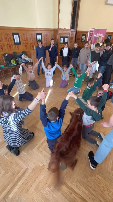 Különleges élmény volt a terápiás kutyák bemutatója, ahol játékos feladatokban a kutyusok a gyerekek által formált alagútrendszeren szlalomozhattak át, nagy sikert aratva. Érdekes előadást és beszélgetést hallhattak az autizmusról, az autista emberek érzéseiről és mindennapjairól, valamint az elfogadásuk és segítésük érdekében jó tanácsokat is kaptak. Nagyon tanulságos volt a beszélgetés, mivel a gyerekek – bár eleinte azt mondták, nem ismernek autista embert – utólag rájöttek, hogy mégis vannak ilyen ismerőseik, ami másnap az iskolában is további mélyebb beszélgetést igényelt az egyik csoportnál. Az emeleten megtekintettük az autizmussal élő gyermekek csodálatos rajzkiállítását is.